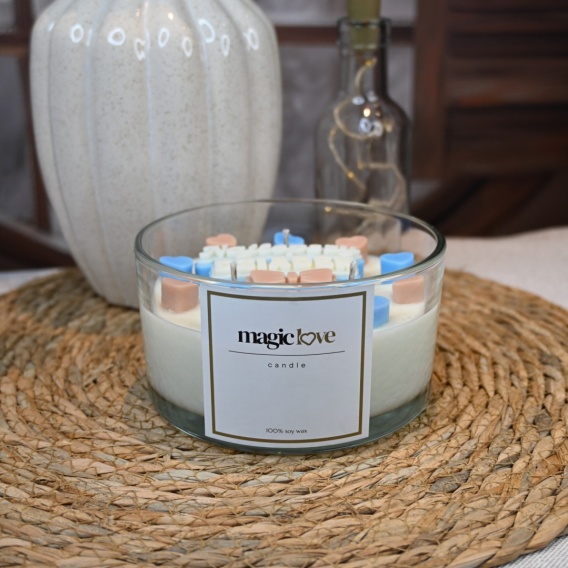 Świeca sojowa z uroczym napisem „Najlepszy Dziadek” to wyjątkowy sposób, aby wyrazić wdzięczność i miłość. Delikatny napis na powierzchni wosku otoczony jest małymi serduszkami w kolorze niebieskim i beżowym, które nadają świecy ciepłego, subtelnego charakteru i podkreślają jej wyjątkowość.