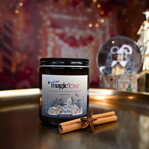Ta wyjątkowa świeca sojowa w eleganckim bursztynowym szkle została stworzona specjalnie z myślą o magii świąt. Jej czarna metalowa nakrętka nadaje całości nowoczesnego i stylowego charakteru, a piękna, świąteczna etykieta sprawia, że świeca prezentuje się doskonale zarówno w roli dekoracji, jak i wyjątkowego prezentu.